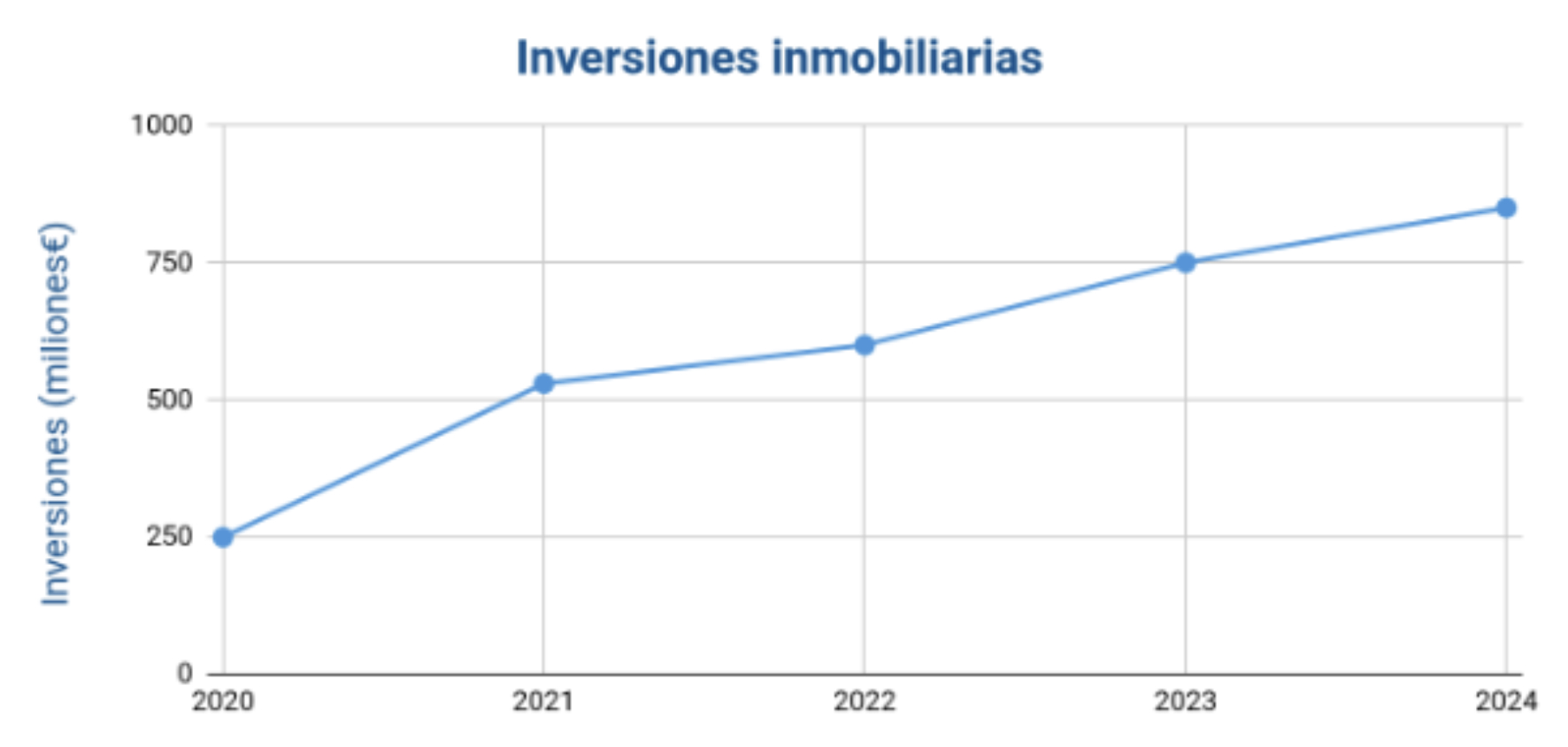 Aquí está el gráfico que representa la evolución de las inversiones inmobiliarias en Alicante desde el 2020 hasta 2024.